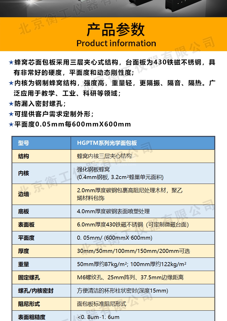 衡工HGPT-M系列光學(xué)隔振面包板