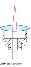 透鏡的中心也稱為向心性或離心性,是根據(jù)光束偏差δ(方程式1)而指定的。一旦給定了光束偏差,則可以通過(guò)一種簡(jiǎn)單的關(guān)系來(lái)計(jì)算楔角W(方程式2)。 透鏡的離心量是機(jī)械軸與光學(xué)軸物理偏離的距離。透鏡的機(jī)械軸僅為透鏡的幾何軸,是由其外部的柱面來(lái)定義的。 透鏡的光學(xué)軸是由光學(xué)表面來(lái)定義的,它是連接各表面曲率中心的線。要進(jìn)行向心性測(cè)試,請(qǐng)將透鏡置于茶杯中,對(duì)其施壓。 對(duì)透鏡施加的壓力會(huì)自動(dòng)聚集在茶杯中心第一個(gè)表面的曲率中心,并且該中心還會(huì)與 旋轉(zhuǎn)軸對(duì)齊(圖2)。沿著此旋轉(zhuǎn)軸射入的平行光將會(huì)穿過(guò)透鏡,到達(dá)后焦平面的焦點(diǎn)處。當(dāng)透鏡隨著茶杯的旋轉(zhuǎn)而旋轉(zhuǎn)時(shí),透鏡中的任何離心性都會(huì)使聚焦光束分散,并在后焦平面形成一個(gè)半徑為 Δ 的圓軌跡(圖1)。