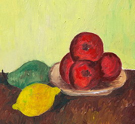 圖 5a: 這幅色彩豐富的 水果 圖是費(fèi)城畫家Nicole Koenitzer的作品,這幅畫詳細(xì)說明了畫家的作畫計(jì)劃過程。通過利用近紅外波段來檢測(cè)繪圖,用戶可以了解該名畫家的作畫思維,從*初的起稿到上顏料,再到細(xì)化作品等階段。