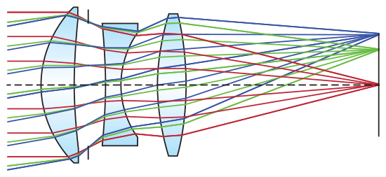 圖2: 多色光,通過(guò)三合透鏡