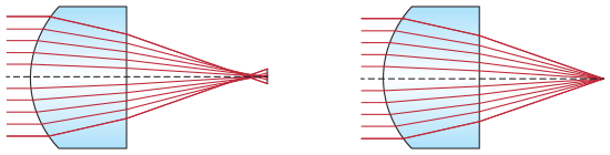 圖1: 帶有球差的球透鏡,以及幾乎沒(méi)有任何球差的非球面透鏡
