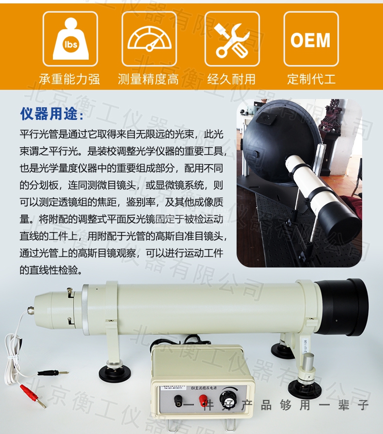 平行光管是通過它取得來自無限遠(yuǎn)的光束,此光束謂之平行光。是裝校調(diào)整光學(xué)儀器的重