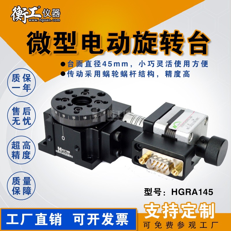 標(biāo)準(zhǔn)配備有步進(jìn)電機(jī)和標(biāo)準(zhǔn)RS232接口,可增加光電零位,配合HGC系列運(yùn)動(dòng)控制器可實(shí)現(xiàn)自動(dòng)控制