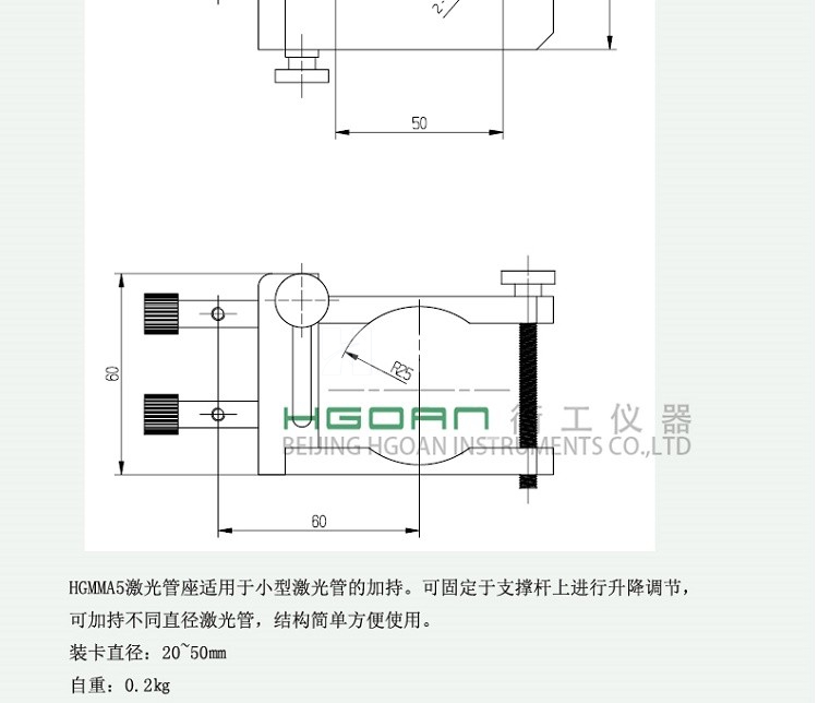 HGMMA5激光座適用于小型激光管的加持,可固定于支撐桿上進(jìn)行升降調(diào)節(jié),可加持不同直徑激光管,結(jié)構(gòu)簡單方便實用。