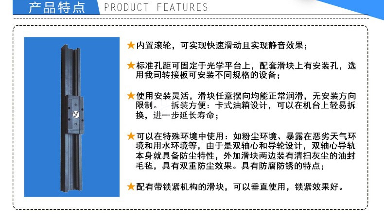 光學(xué)滑軌高速雙軸心滾輪導(dǎo)軌帶鎖緊機(jī)構(gòu)刻度滑塊光具座載物臺軌道